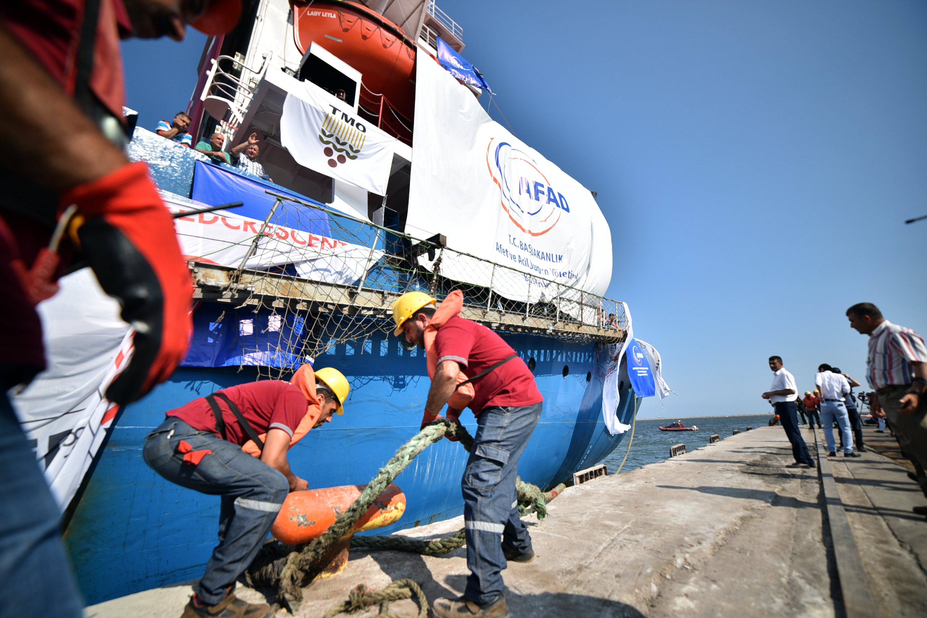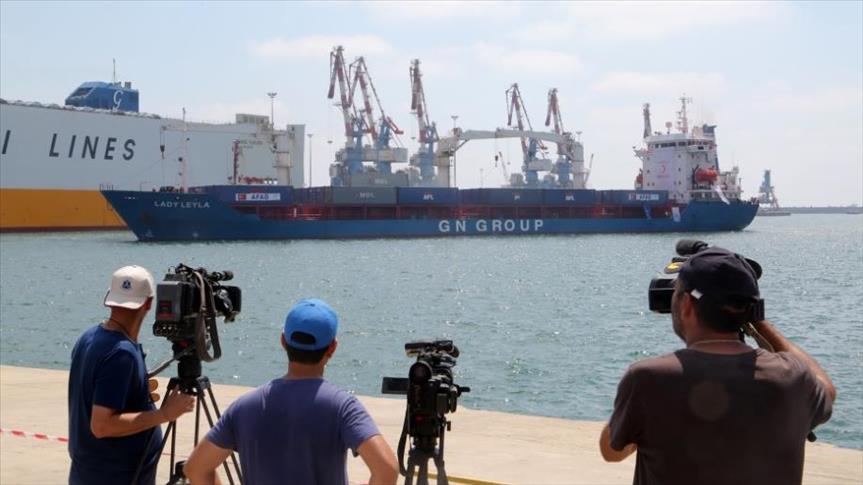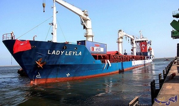 وكانت السفينة “ليدي ليلى” انطلقت من ميناء مدينة مرسين التركية (جنوب)، أول أمس الجمعة، محملة بـ 11 ألف طن من المساعدات الإنسانية.