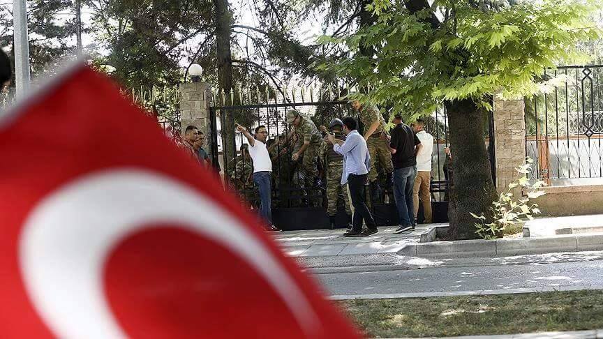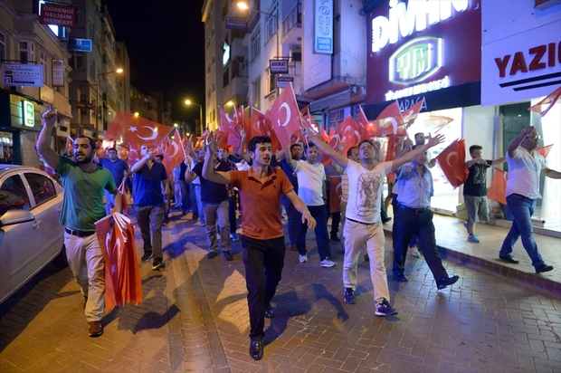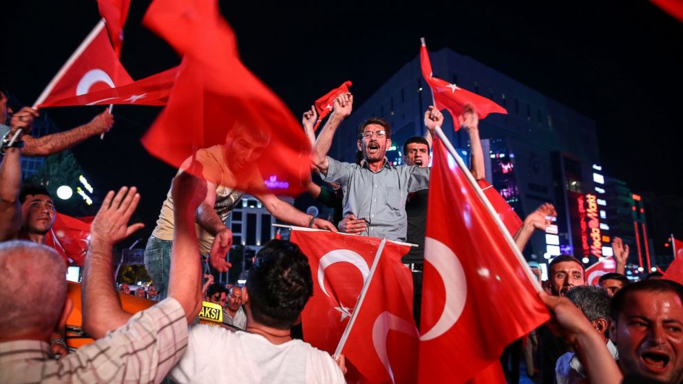 واحتشد المواطنون في ميادين وشوارع تركيا، حاملين الأعلام التركية، وتوجهت الجموع إلى الأماكن التي حاول الانقلابيون في تركيا السيطرة عليها.