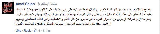 وأضاف: “إذا أردوغان بيأوي عنده من يضايقون النظام المصري، وكل الأنظمة العربية، في المقابل لما لا تستضيف مصر كولن مش للمضايقة، ولكن لكي يكون وجودنا في المعركة أكبر من وجودنا الحالي”.