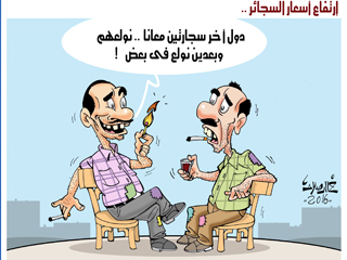 مازال قانون القيمة المضافة والحالة السيئة التي يمر بها المواطن المصري جراء أرتفاع الأسعار كل يوم، تتصدر موضوعات الرسوم الساخرة في المواقع الإخبارية. وتناولت الرسوم الساخرة لهذا اليوم عدة موضوعات أبرزها القضية الفلسطينية،
