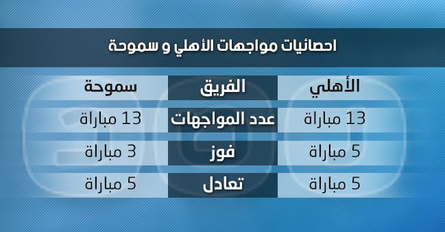ونقدم لكم إحصائية لعدد مباريات الأهلي وسموحة، ومرات الفوز والخسارة للفريقين في الانفوجراف التالي: