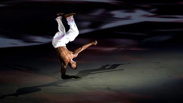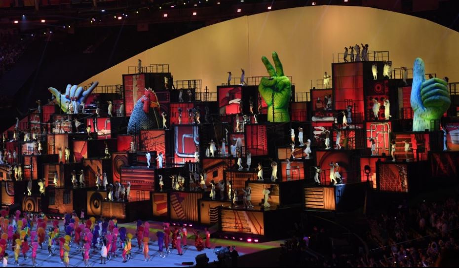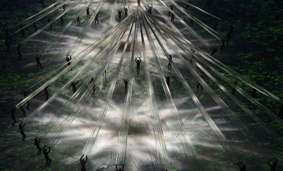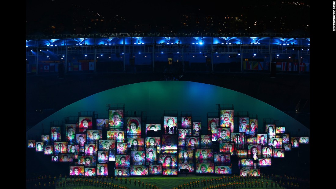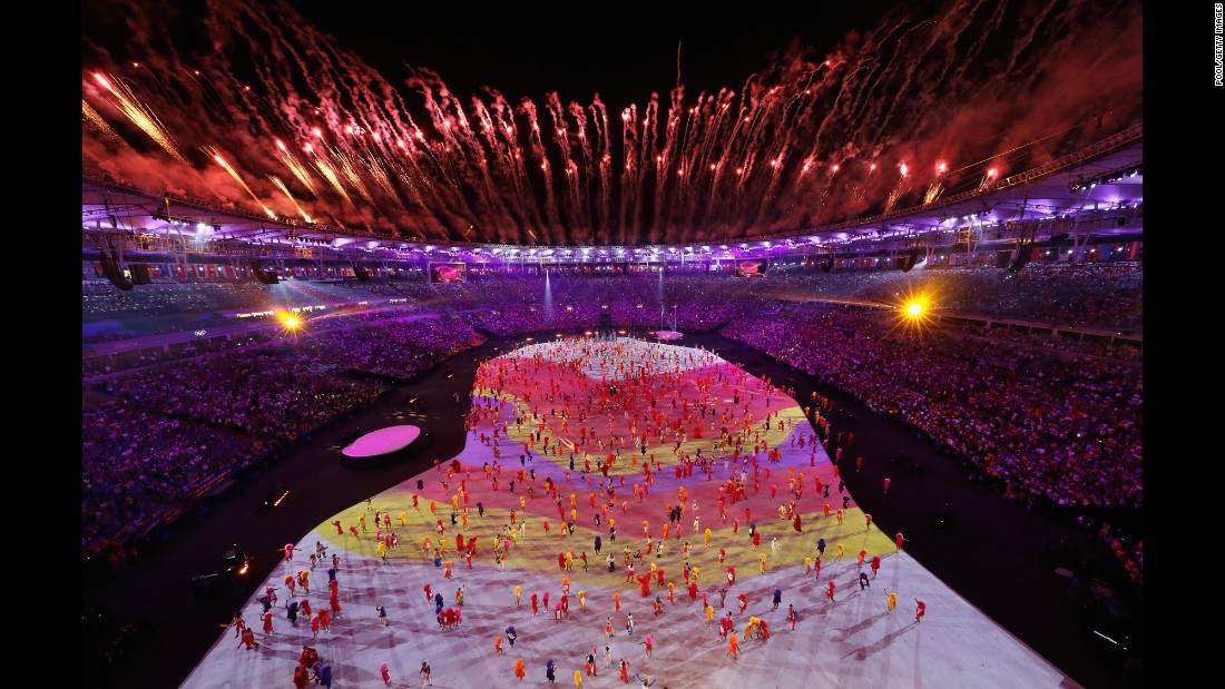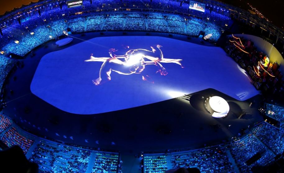 وبدأ الحفل باستعراض للألعاب النارية وعرض راقص شارك فيه الآلاف، يروي قصة نشأة البرازيل تلاه استعراض الفرق المشاركة في الأولمبياد.