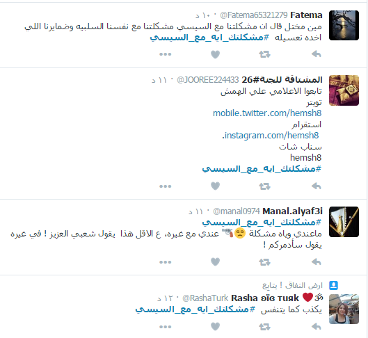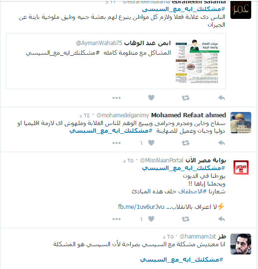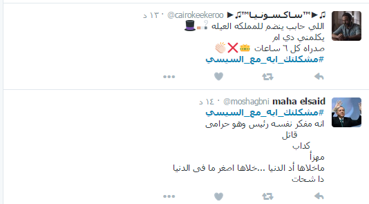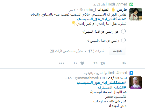 بالتزامن مع تبني الإعلام المصري حملة جديدة لجمع 40 مليون توقيع بهدف تمديد الفترة الرئاسية لـعبدالفتاح السيسي إلى 8 سنوات بدلاً من 4 سنوات، دشن عدد من مستخدمي مواقع التواصل الاجتماعي هاشتاج يحمل عنوان “مشكلتك إيه مع السيسي؟”، وذلك لمعرفة الأسباب التي أدت إلى قيام البعض بمهاجمته في الفترة الأخيرة.