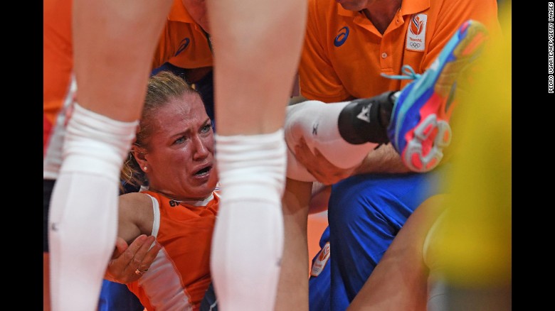 اصيبت الهولندية لاعبة الكرة الطائرة ماريت بالكستين في كاحلها، خلال منافستها في المجموعة الرابعة، وتسببت الإصابة في الخسارة أمام الولايات المتحدة.