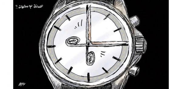 وفي الشأن العربي، نشرت “الطبعة الدولية” رسما يعبر عن إعلان روسيا هدنة يومية في روسيا مقدارها 3 ساعات فقط.