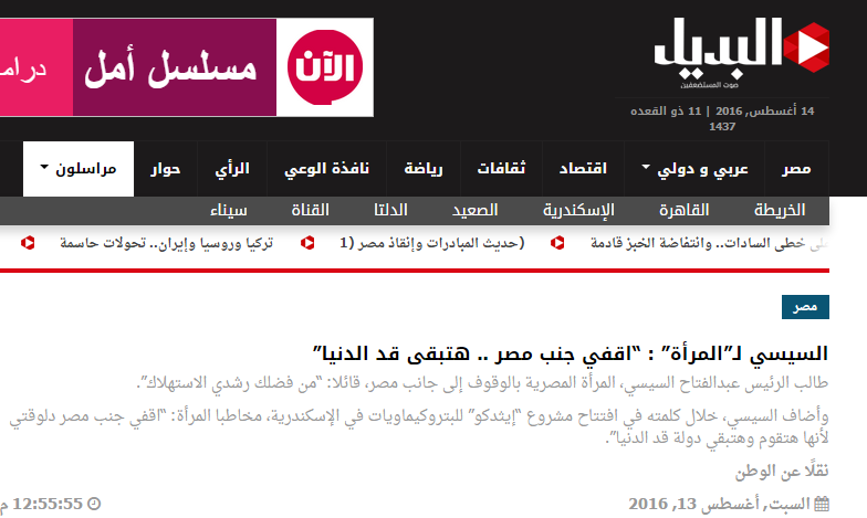 وأيضًا هاجم  أحمد موسى مقدم البرامج المقرب من الجهات الأمنية موقع البديل الإخباري، بسبب نشره الصورة ووضعها على خبر خاص بتصريحات السيسي للمرأة المصرية :”أقفي جنب مصر عشان تبقى قد الدنيا”.
