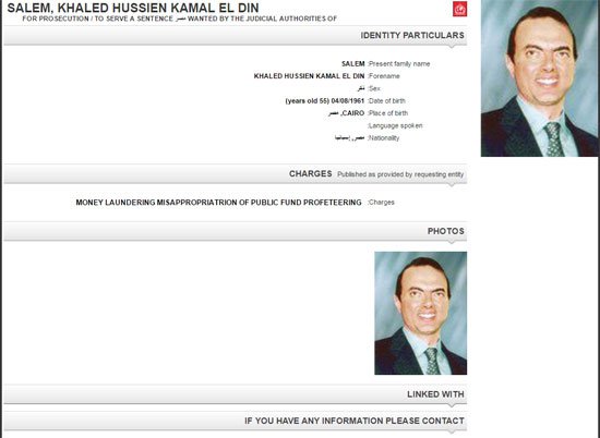 لا يزال الإنتربول يضع صور رجل الأعمال حسين سالم وأسرته على الموقع الرسمي للشرطة الجنائية حتى الآن، رغم صدور قرار من النائب العام المستشار نبيل أحمد صادق، بمخاطبة نظرائه في سويسرا وأسبانيا وهونج كونج لرفع اسم سالم وأفراد أسرته