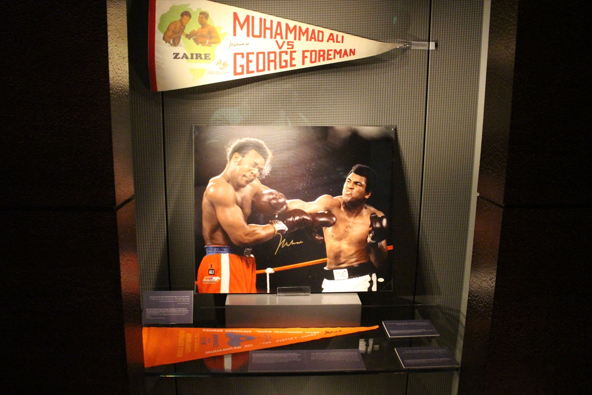 وضم المعرض أيضًا الميدالية الذهبية التي حاز عليها خلال مشاركته في أولمبياد روما عام 1960م، بالإضافة إلى ملابسه التي ارتداها خلال سلسلة مباريات شهيرة له، أهمها تلك التي حسم فيها لقب بطولة العالم على حساب “سوني ليستون” عام 1964، ومواجهته “جورج فوريمان” في 1974 التي انتهت باحتفاظه ببطولة العالم للوزن الثقيل، ومباراته بنهائي بطولة العالم ضد “ليون سبينكس” في نيو أورلينز عام 1978.