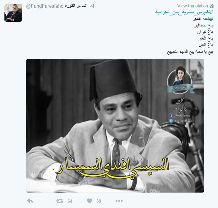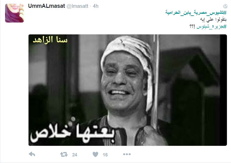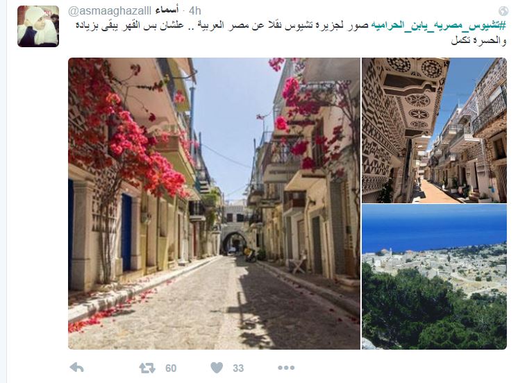 وأطلق مغردون على مواقع التواصل هاشتاج ” #تشيوس_مصريه_يابن_الحراميه”، رفضًا للتنازل عن الجزيرة لدولة اليونان.