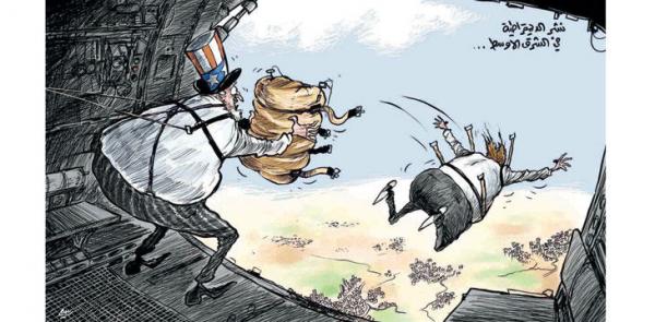 وعبر  “الشرق الاوسط” عن خدعة نشر الديموقراطية في الشرق الأوسط، بأن أميركا تقوم بقتلها لا نشرها.