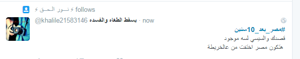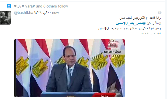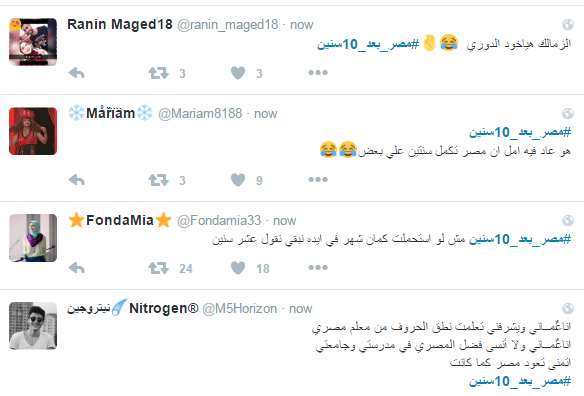 دشن مغردو موقع التدوين المصغر “تويتر” هاشتاج “مصر بعد 10 سنين”، وتناول المغردين مستقبل مصر بعد مرور 10 سنوات من الأن، إذ توقع العديد منهم أن يكون حال مصر أسوأ كما تنبأوا باستمرار السيسي في حكم مصر.