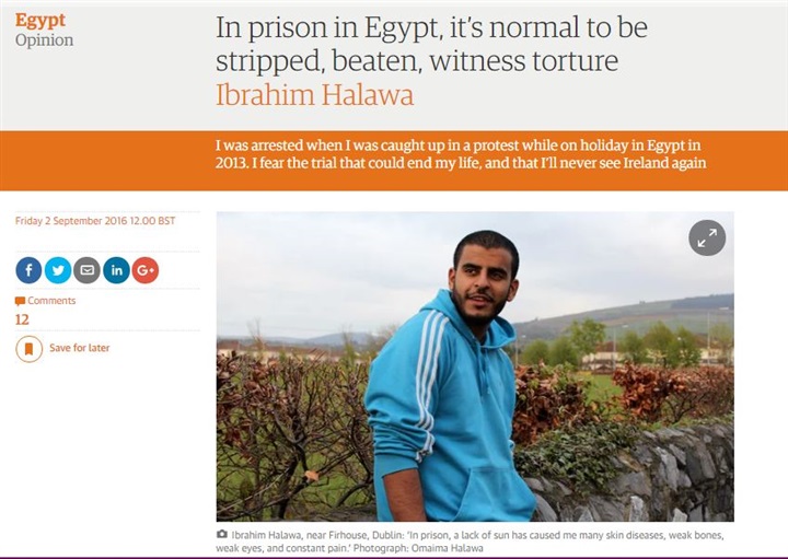 كتب السجين الإيرلندي، المصري الأصل،إبراهيم حلاوة رسالة نشرتها صحيفة “الجارديان” البريطانية، يتحدث فيها عن معاناته في السجون المصرية.
