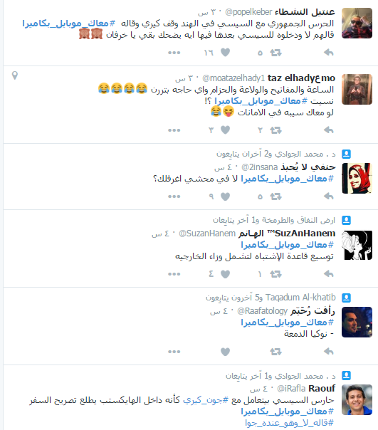 “معاك موبايل بكاميرا؟” سؤال صادم من قبل حارس عبدالفتاح السيسي الشخصي لوزير الخارجية الأميركي جون كيري، أثار جدلاً واسعًا على صفحات التواصل الاجتماعي، وذلك قبل اللقاء الذي جمعهما على هامش زيارة السيسي للهند.
