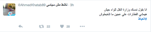 دشن رواد موقع “تويتر “هاشتاج “العياط” ، عقب حادث قطار العياط ، الذي راح ضحيته 5 أشخاص وأصيب 27 آخرون بعد خروج 3 عربات من القطار عن القضبان .