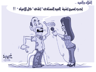 وتناولت الرسوم الكاريكاتورية اليوم في عدد من المواقع عدة موضوعات، منها أزمة الألبان والفساد وغلو الأسعار بدخول عيد الأضحي، كما اهتمت بالشأن العربي ومنها الهزائم المتلاحقة لتنظيم الدولة .