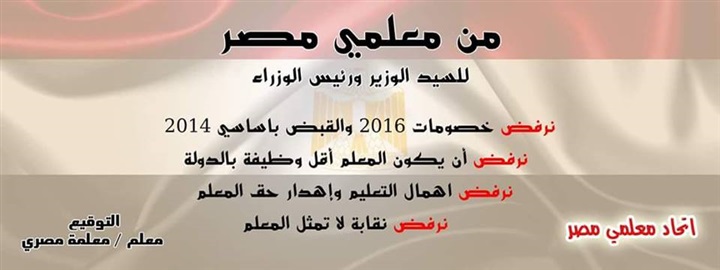 وبحسب بيان الاتحاد فإنه اراد منه أن يوجه رسالة هامة إلى المهندس شريف إسماعيل رئيس الوزراء، والتي كان مضمونها رفضهم التام للخصومات من مرتبات المعلمين.