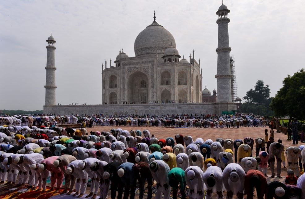 10- المسلمون في الهند يؤدون صلاة العيد في ساحة تاج محل