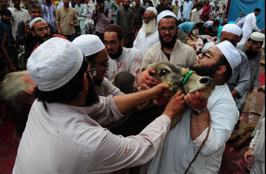 5- ذبح أحد العجول في اليوم الأول من عيد الأضحى في كراتشي، باكستان
