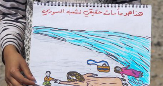 وشرحت الطفلة من خلال إحدى الرسومات، المأساة الحقيقية للشعب السوري، فعندما حاول السوريون الفرار من نيران وقصف النظام، ابتلعهم البحر، ففي إحصائية لعدد الغرقى من المهاجرين عبر البحر من المرصد الأورومتوسطي لحقوق الإنسان أن أعداد الغرقى وصلت منذ مطلع العام الحالي إلى ما يزيد عن 1400 غريق، وفي إحصائية لعام 2015 فإن البحر يبتلع مهاجر كل 4 ساعات.