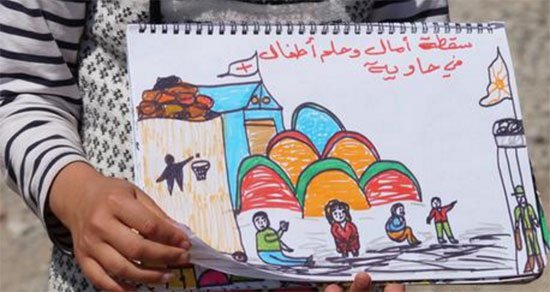 وأما عن الأوضاع الصعبة التي يعيشها السوريين داخل المخيمات في دول أوروبا وغيرها، قالت الطفلة في تعليق على احد رسوماتها، إن كل الاحلام سقطت وتلاشت داخل المخيمات، التي أصبحت سجونًا عليها حراس، وتغيب عنها أبسط مظاهر الحياة الآدمية.