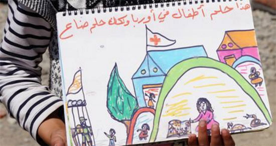 وعبرت الطفلة عن ما كانت تحلم به هي وكل الاطفال، عندما تصل إلى أوروبا، وفي مخيلتها أنها ستحقق أحلامها وتبدأ حياة آمنة، ولكن حلمها ضاهع هباءً داخل أسوار المخيم الذي تعيش فيه.