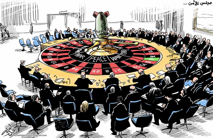 وعبرت “القدس العربي” عن مساعدة مجلس الأمن لكافة الانتهاكات، والسكوت عن جرائم الأنظمة، ووصفتهم من خلال الرسم بمشاركتهم تلك الجرائم.