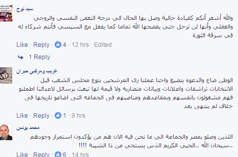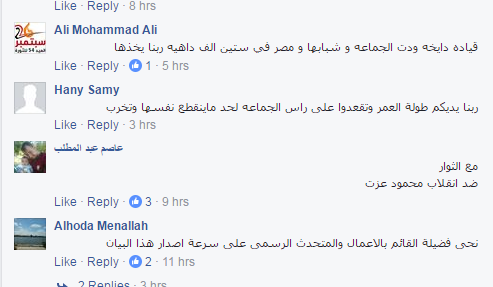 ولاقى البيان نقد وتأييد من شباب جماعة الإخوان ومعارضي النظام العسكري وظهر ذلك عبر تعليقاتهم على المنشور الذي نشر على صفحة الإخوان وجاءت ردود الأفعال كالتي