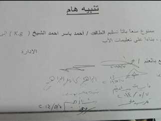 وتابعت المدرسة أن الطالب حضر أول يوم لحضور الجلسات يوم الأحد والاثنين والثلاثاء من 25 إلى 27 سبتمبر 2016، و قد تغيب عن المدرسة يومى الأربعاء 28/9 والخميس 29/9 بعد خلاف مع الوالد بخصوص تأخر الأتوبيس عن الوصول لمنزل الطالب فى مدينة الشيخ زايد، مدة لا تزيد على النصف ساعة، ويعتبر هذا التاخير أمرا طبيعيا فى بداية الجلسات، خصوصا وأن والد الطالب طلب تغييرالخط بعد تأخره فى اليوم الاول.
