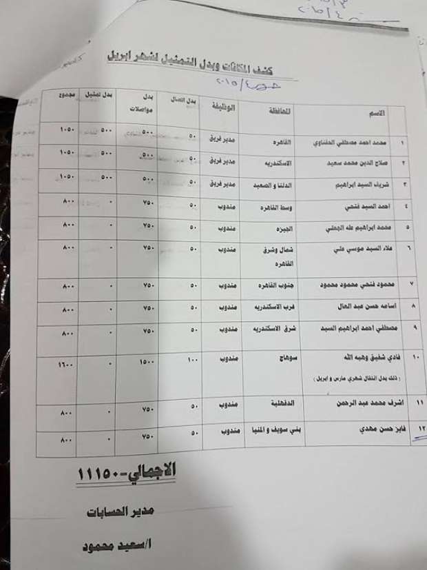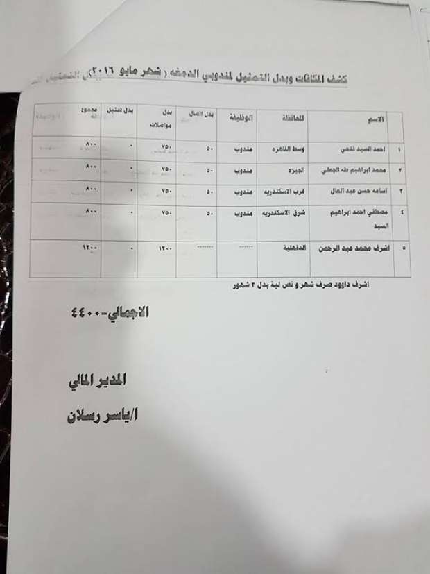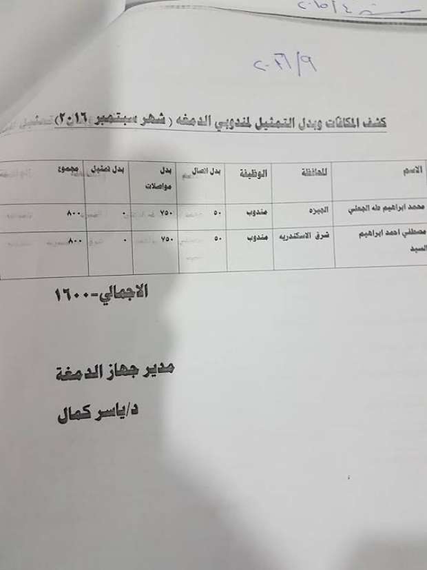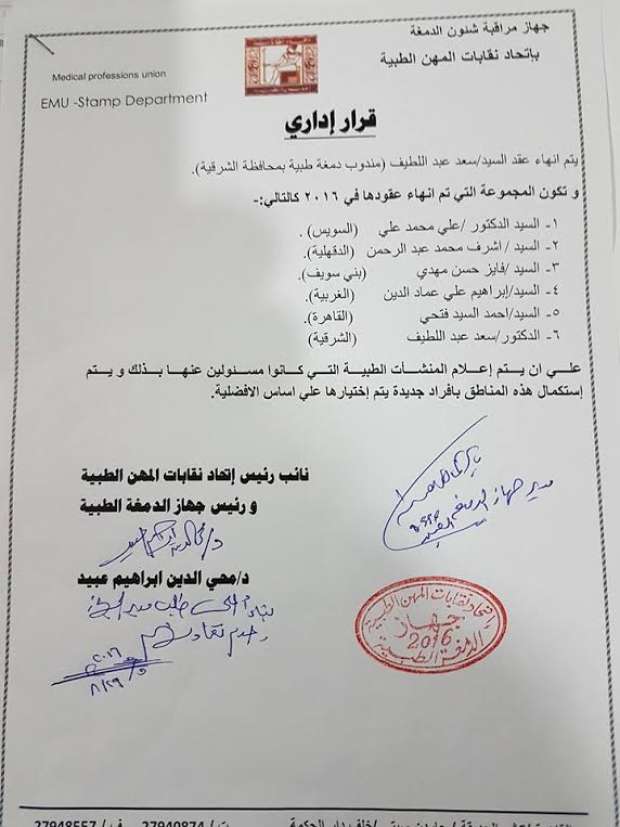 وأضافت النقابة أن “عدد مندوبي تحصيل الدمغة كان 12 عام 2015م، وتم تسريح عدد كبير منهم لعدم الجدية وضعف التحصيل وعدم المرور الفعلي على العيادات الطبية، وتم تقليل مكافآت التمثيل حيث بلغت مكافآت بدل التمثيل في شهر مارس 2015 إلى 10 آلاف و350 جنيه، وفي شهر 4/2015 كانت 11150جنيه، ووصلت مكافأة بدل التحصيل في شهر 7/2016 إلى 3200 جنيه وفي شهر 8 من هذا العام 2400ج وفي شهر 9 من هذا العام 1600ج”.