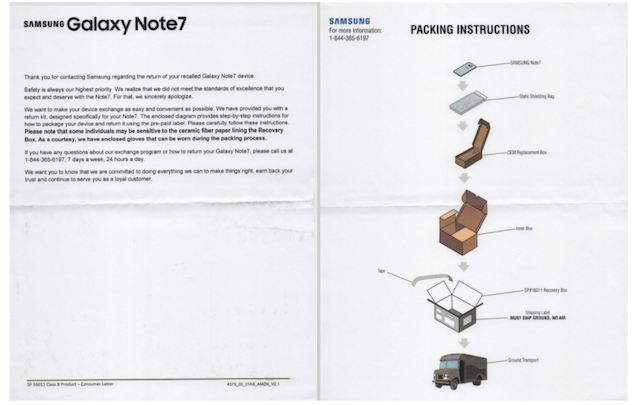 بدأت شركة “سامسونج” في إرسال صناديق مقاومة للحرائق، وقفازات واقية لعملائها الذين اشتروا هاتف جالاكسي نوت 7، من أجل استعادة الهاتف، بحسب آخر بيان للشركة.