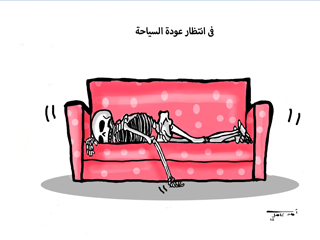 وعبرت “روزاليوسف” عن الدمار الذي أصبح فيه قطاع السياحة وعدم وضع حلول لعودته وإنعاشه مرة أخرى بالكاريكاتير التالي: