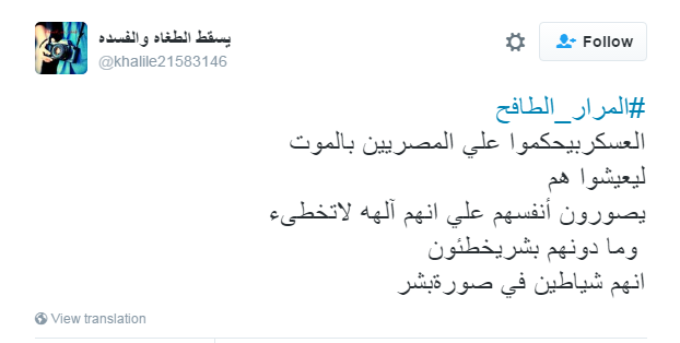 دشن مغردو موقع التدوين العالمي”تويتر” هاشتاج “المرار الطافح” والذي انطلقت منه تعليقات تعبر عن الأزمات الاقتصادية والسياسية التي يعاني على إثرها المواطنين المصريين من الطبقة المتوسطة ومحدودي الدخل.