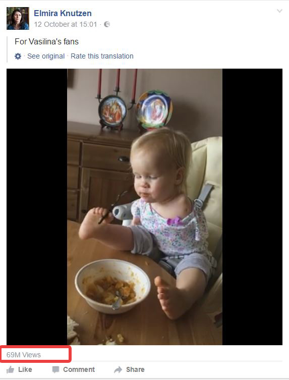 وتقول والدة “فازلينا” أنها شاركت الفيديو الذي صورته لأبنتها وهي تعتمد على نفسها في الطعام، على صفحتها في موقع الفيسبوك، وحقق مشاهدة فاقت الـ 69 مليون مشاهدة.