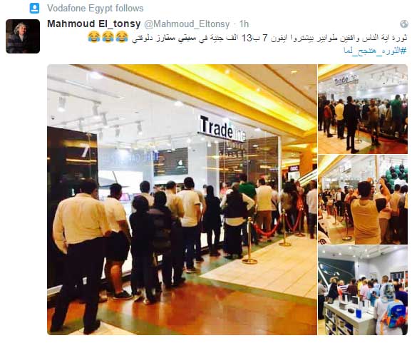وشهدت الصور احتشاد عدد كبير من المواطنين لشراء الهاتف المحمول الباهظ الثمن، والذي يتراوح سعره بين الـ13000 والـ19000 جنيه، مما أثارت الصور جدلًا على مواقع التواصل في ظل الأزمات التي تمر بها البلاد.