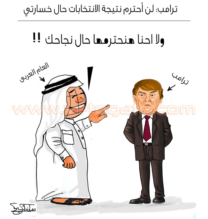 وعبرت “فيتو” في كاريكاتير اليوم، عن مشاعر ملايين العرب تجاه المرشح الجمهوري للرئاسة الأميركية دونالد ترامب .