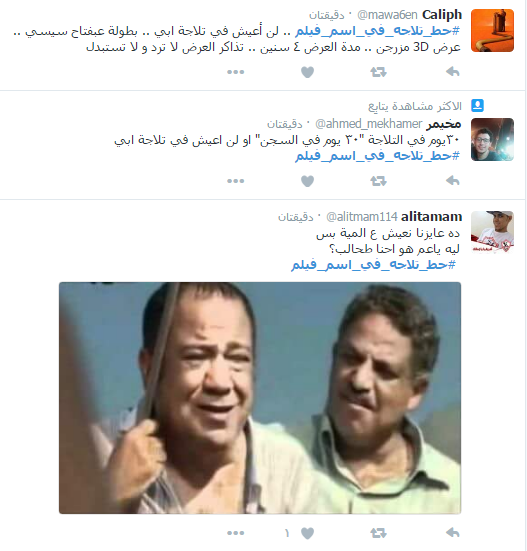 دشن نشطاء بموقع التدوين المصغر الشهير “تويتر”، هاشتاجًا ساخرًا، بعد كلمة عبدالفتاح السيسي، أمس  الأربعاء، والتي ألقاها بالمؤتمر الوطني الأول للشباب المنعقد بشرم الشيخ، تحت اسم “حط تلاجه في اسم فيلم”.