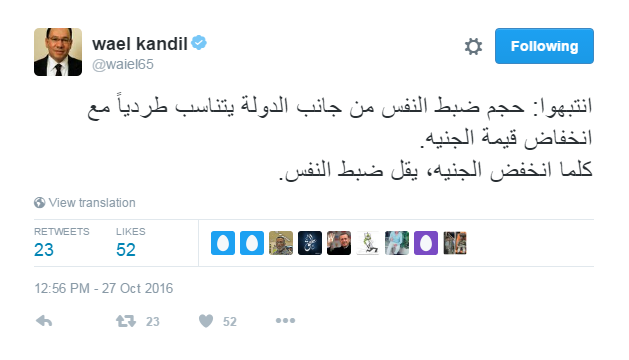 وقال قنديل عبر صفحته الشخصيه على موقع التواصل الاجتماعى “تويتر”:” انتبهوا: حجم ضبط النفس من جانب الدولة يتناسب طرديًا مع انخفاض قيمة الجنيه.. كلما انخفض الجنيه، يقل ضبط النفس”.