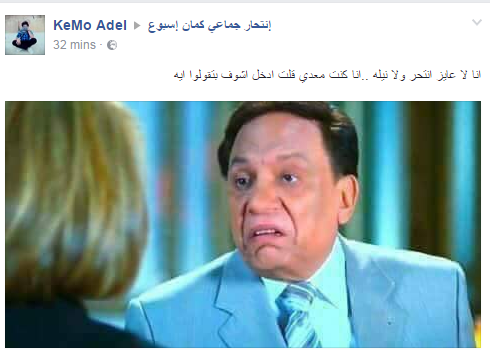 وقال مدير الصفحة: “بعد الأحداث الأخيرة أعتقد ده الوقت المناسب إننا نجمع بعض وننبسط كلنا .. الموضوع زي مانتوا شايفين من 8 الصبح .. أنا عارف إنه صعب بس ده انتحار يا جماعة مش هزار فلازم نلتزم شوية بالله عليكوا وأنا كمان مدي مهلة يومين عشان لو حد كسل او قاعد 8 ساعات بيلبس أو غسل وشه ف 4 ساعات ياريت منكسلش بس.