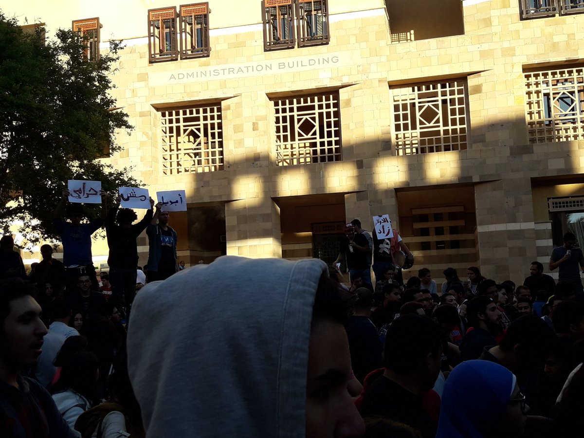 تظاهر طلاب الجامعة الأمريكية، اليوم الإثنين، اعتراضًا على زيادة أسعار المصروفات بعد تعويم الجنيه المصري، وتحرير سعر صرفه أمام العملات الأجنبية.