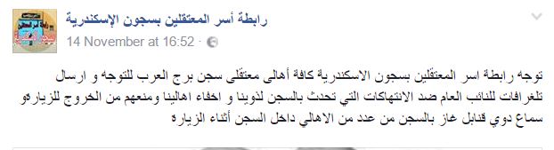 وأعلنت صفحة الرابطة اليوم، اعتداء قوات الأمن بسجن برج العرب على أهالي المعتقلين بالهراوات و العصي ووقوع إصابات بين الاهالي.