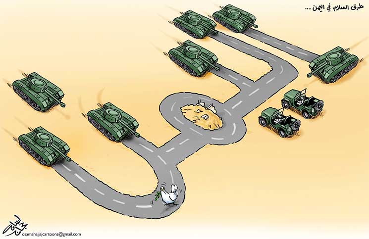 -عبر “القدس العربي” عن محاولات السلام الفاشلة في اليمن، بالكاريكاتير التالي: