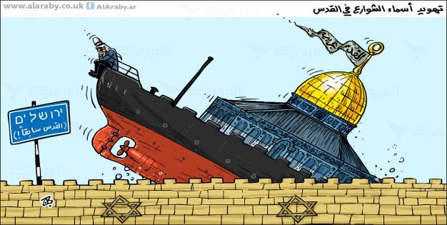 – سلط كاريكاتير “العربي الجديد” الضوء على محاولة تهويد القدس.