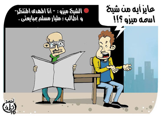 – سخر كاريكاتير “اليوم السابع”، من ادعاء الشيخ “ميزو”بأنه “المهدى المنتظر”.