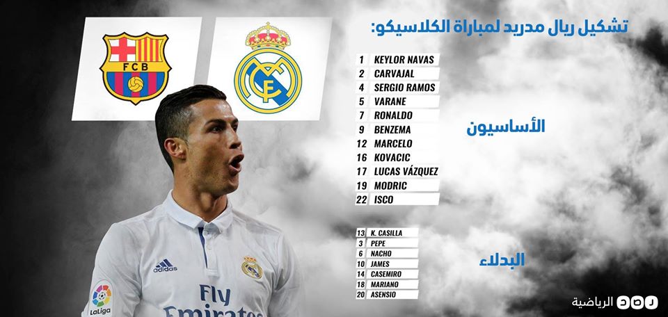 بينما يخوض ريال مدريد المباراة بتشكيل مكون من :