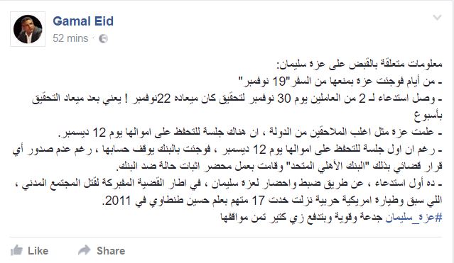 استهجن نشطاء مواقع التواصل الاجتماعي، القبض على الناشطة الحقوقية عزة سليمان، على خلفية قضية التمويل الأجنبي.