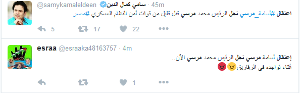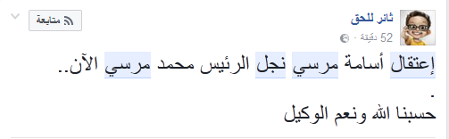 وكتب عبدالله مرسي، عبر صفحته الشخصية “فيس بوك” :” تم اعتقال أخي أسامة، حسبنا الله ونعم الوكيل”