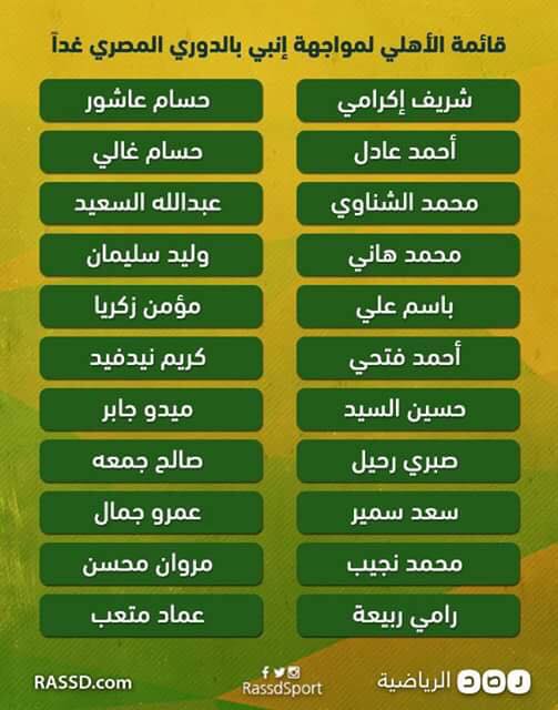 وأعلن الجهاز الفني للنادي الأحمر بقيادة حسام البدري المدير الفني، قائمة الفريق والتي شهدت وجود رامي ربيعة.