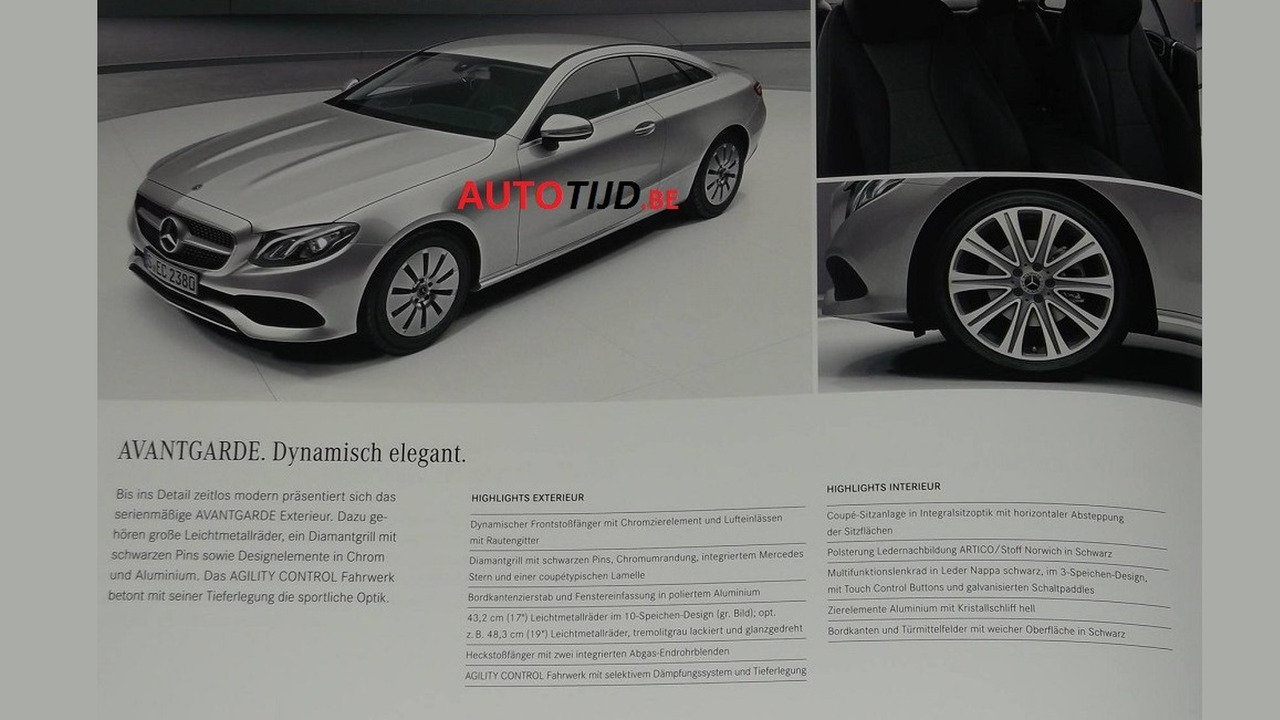 نشرت مرسيدس فيديو تشويقي لسيارتها الجديدة E-Class كوبيه، تمهيدًا لظهورها المقرر في يوم 14 ديسمبر الجاري، وتداولت عدد من المواقع صورًا مسربة من الكتيب الرسمي للسيارة قبل نشرها.