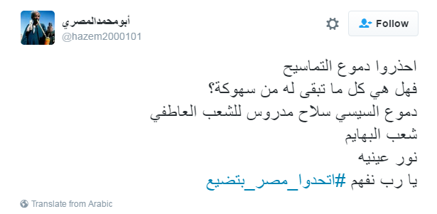 وسخر النشطاء على مواقع التواصل الاجتماعي من بكاء السيسي، فبدلاً من التعاطف معه، شهدت مواقع التواصل الاجتماعي موجة من السخرية منه.