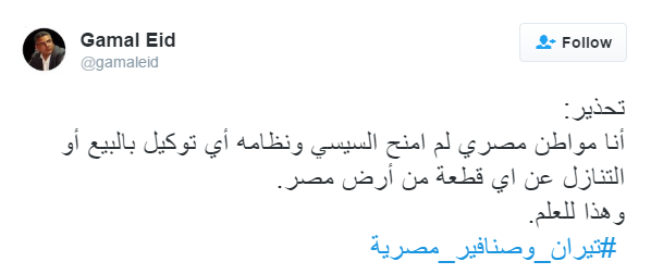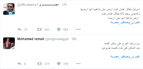 وسم “تيران وصنافير مصرية”: بعد ماتش القمة لقينا البلد ناقصة جزيرتين